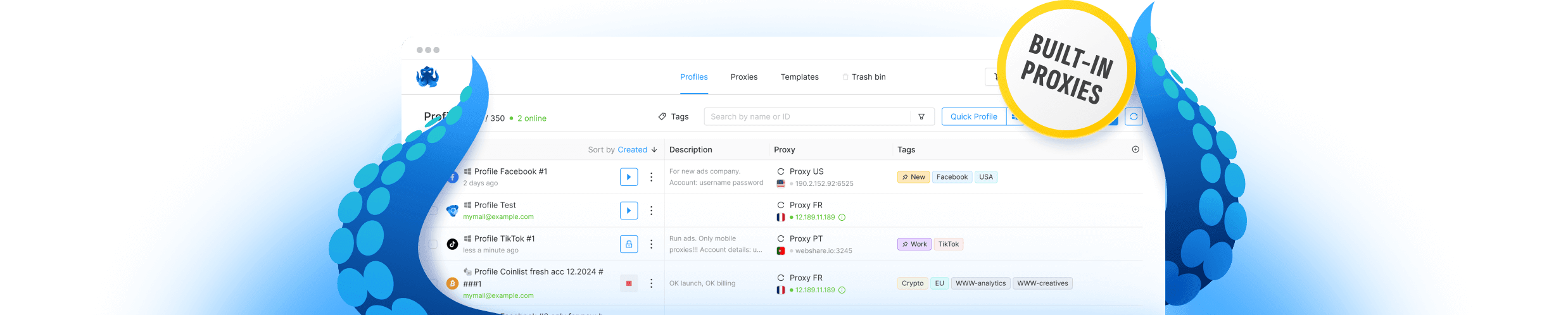 Octo Browser’s mission is top-quality digital fingerprint spoofing, convenience, and high speed. The browser’s stability is confirmed by an uptime of 99.995%.